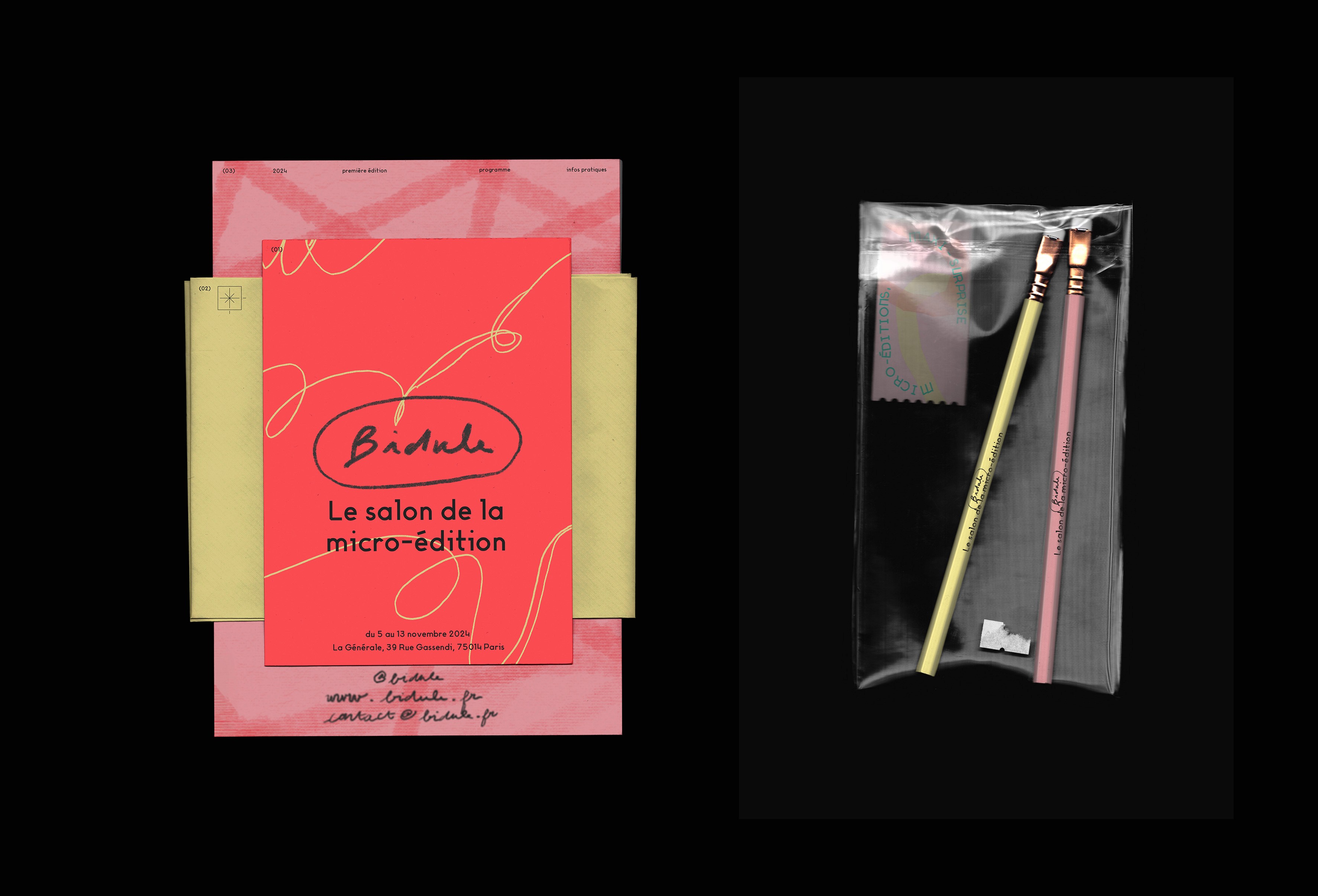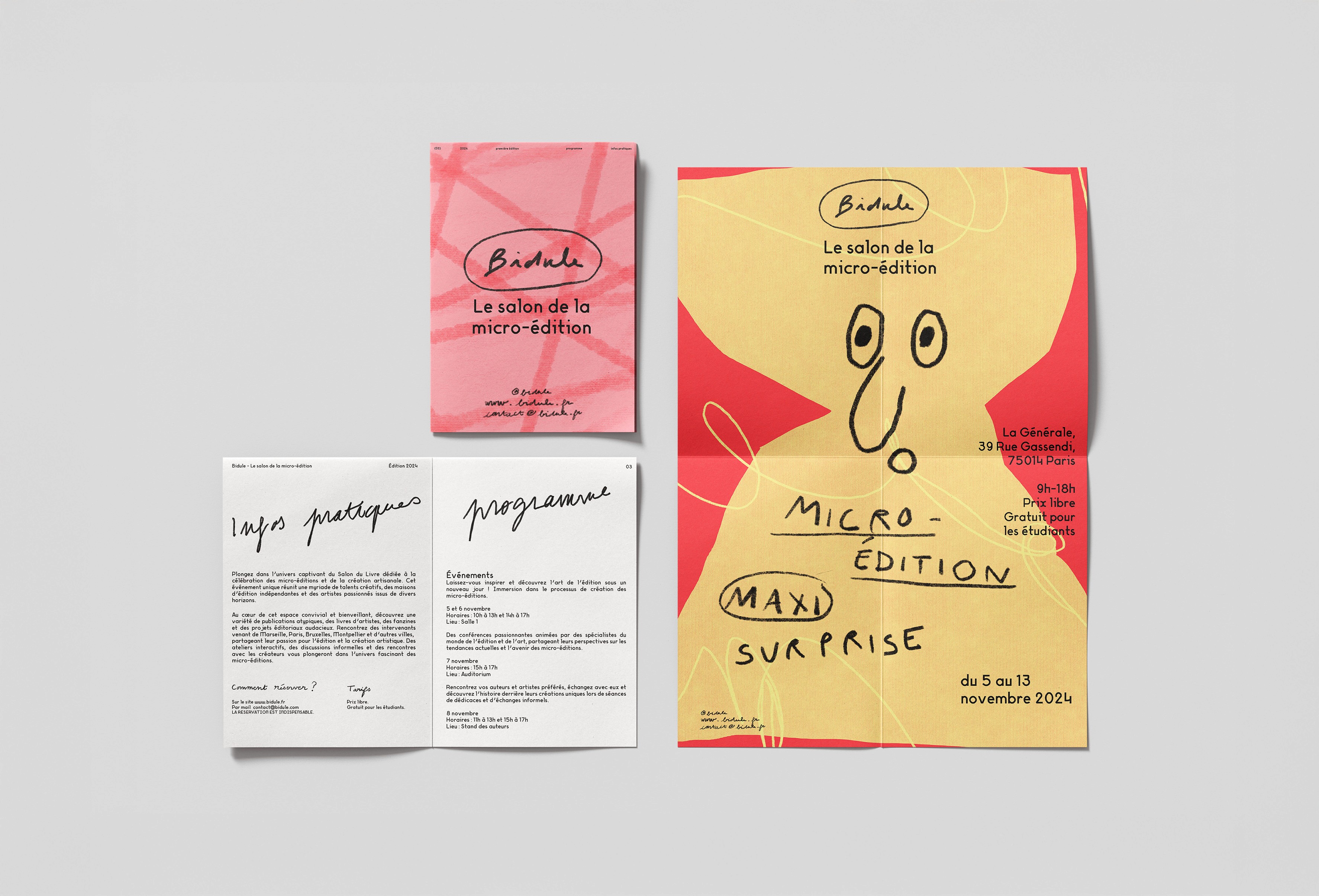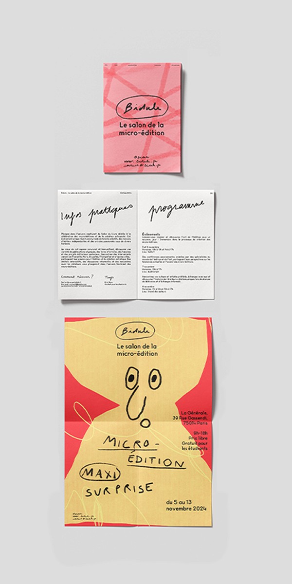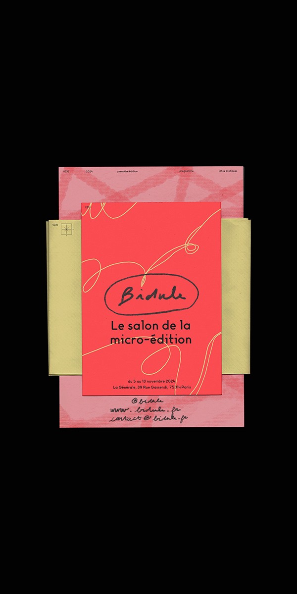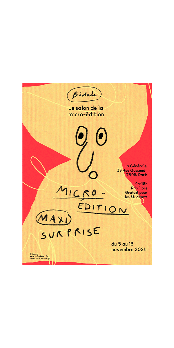 Bidule Book Fair est un salon d’édition fictif imaginé autour des micro-éditions et des formes artisanales du livre-objet. Fanzines, leporellos, reliures faites main ou formats uniques y trouvent leur place, dans une approche où fabriquer devient aussi important que publier.
