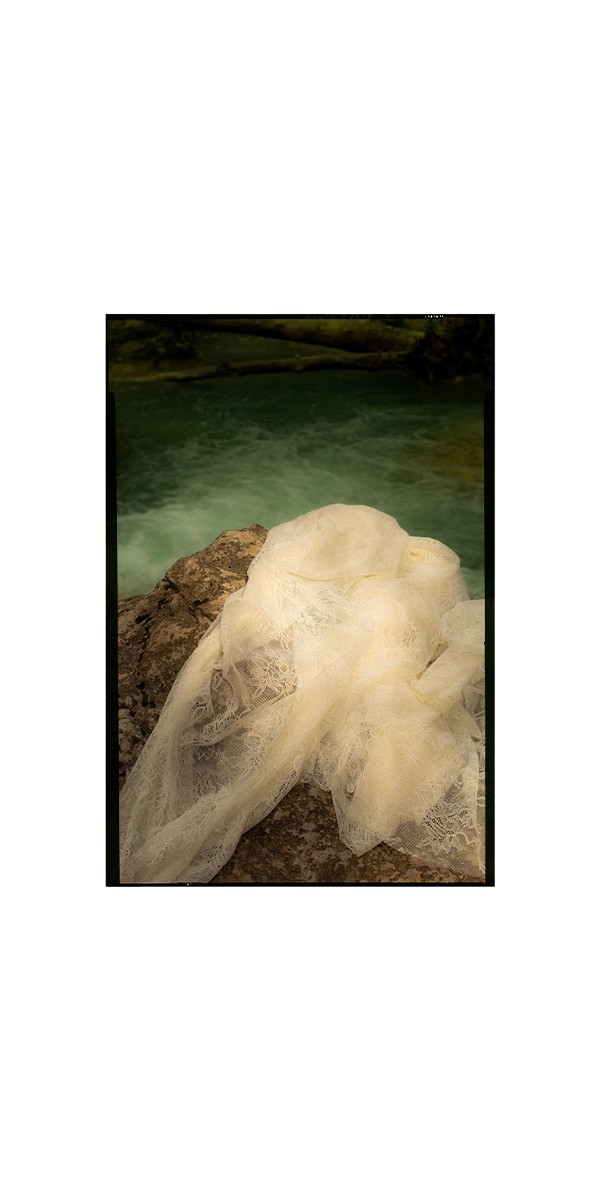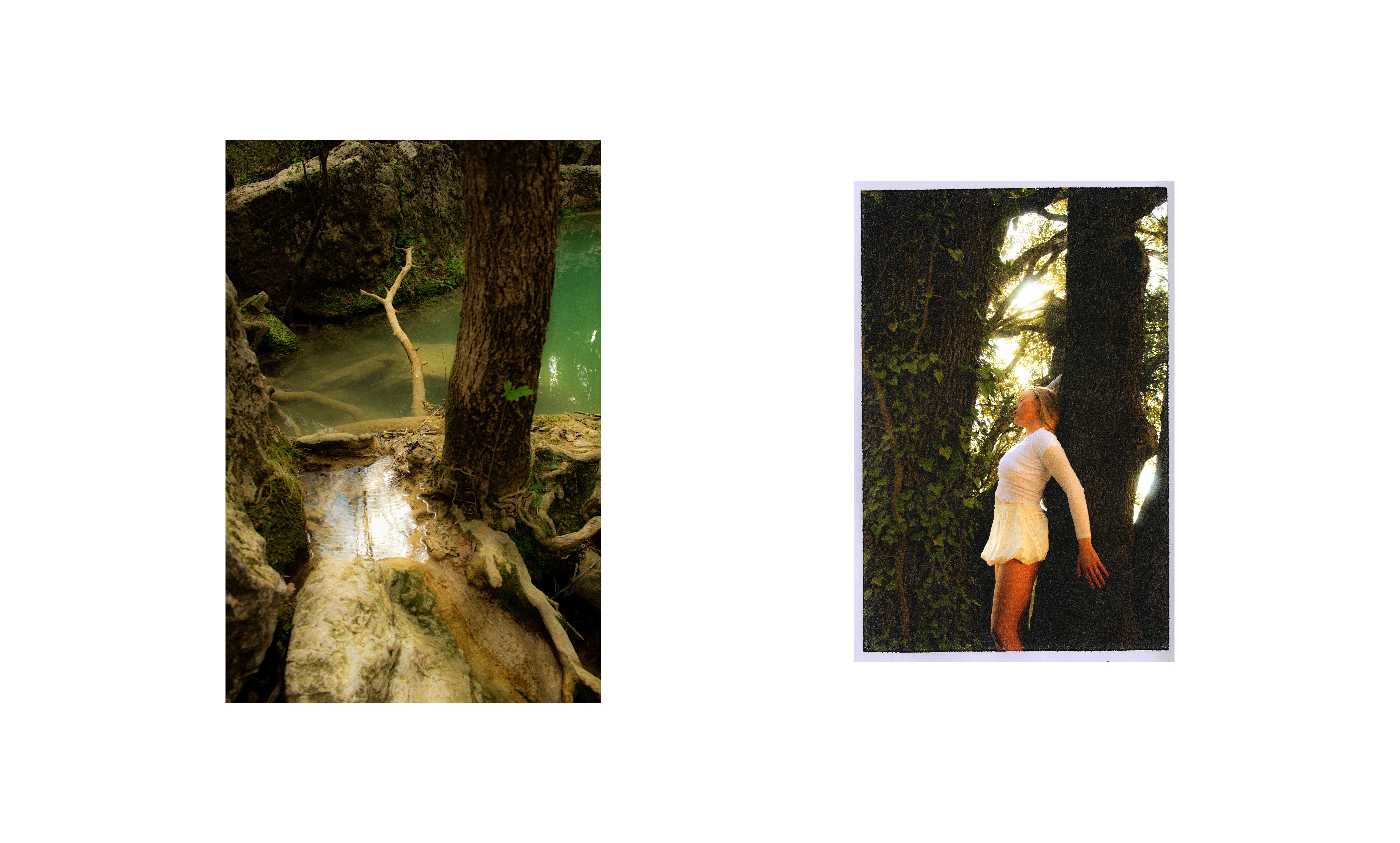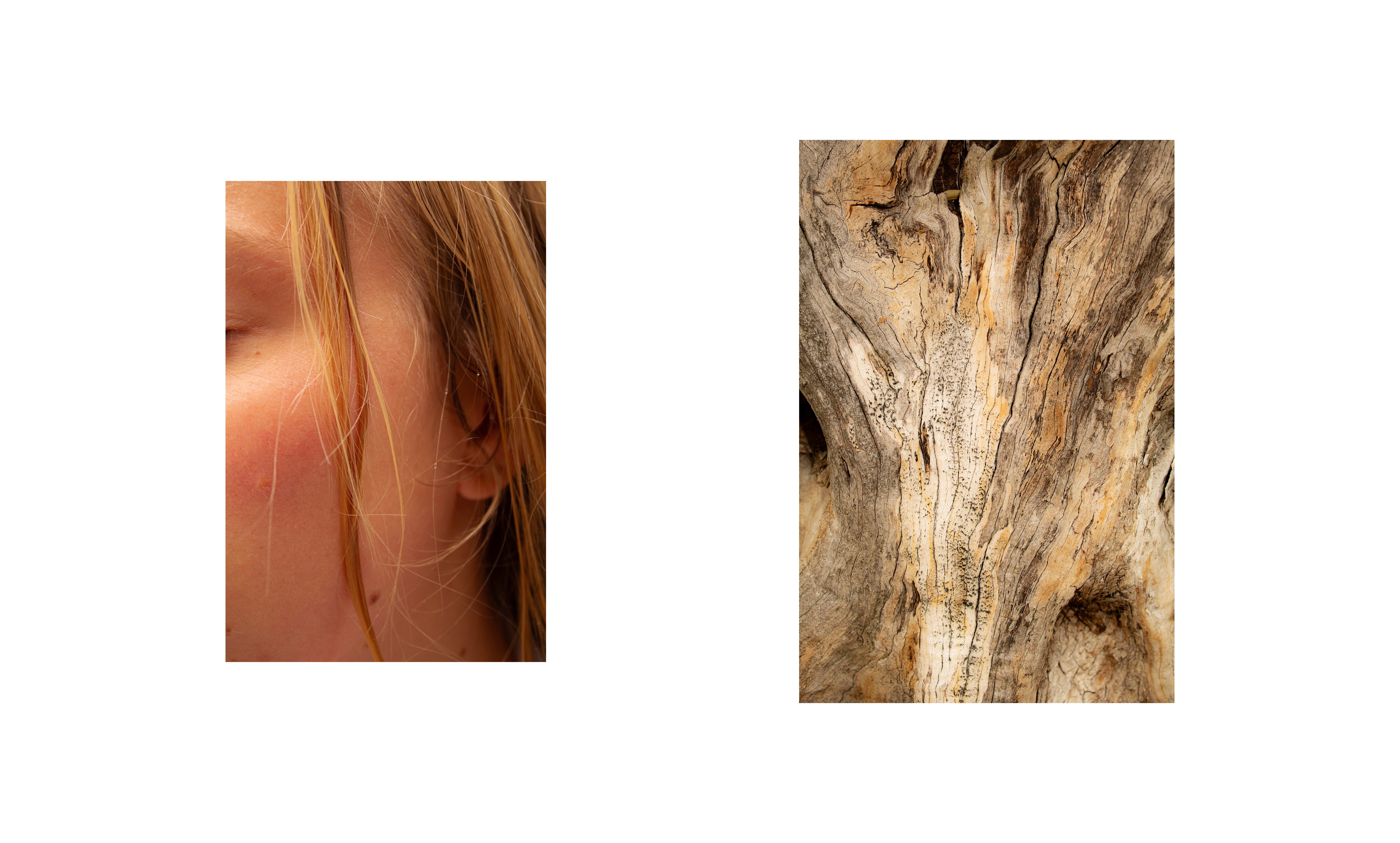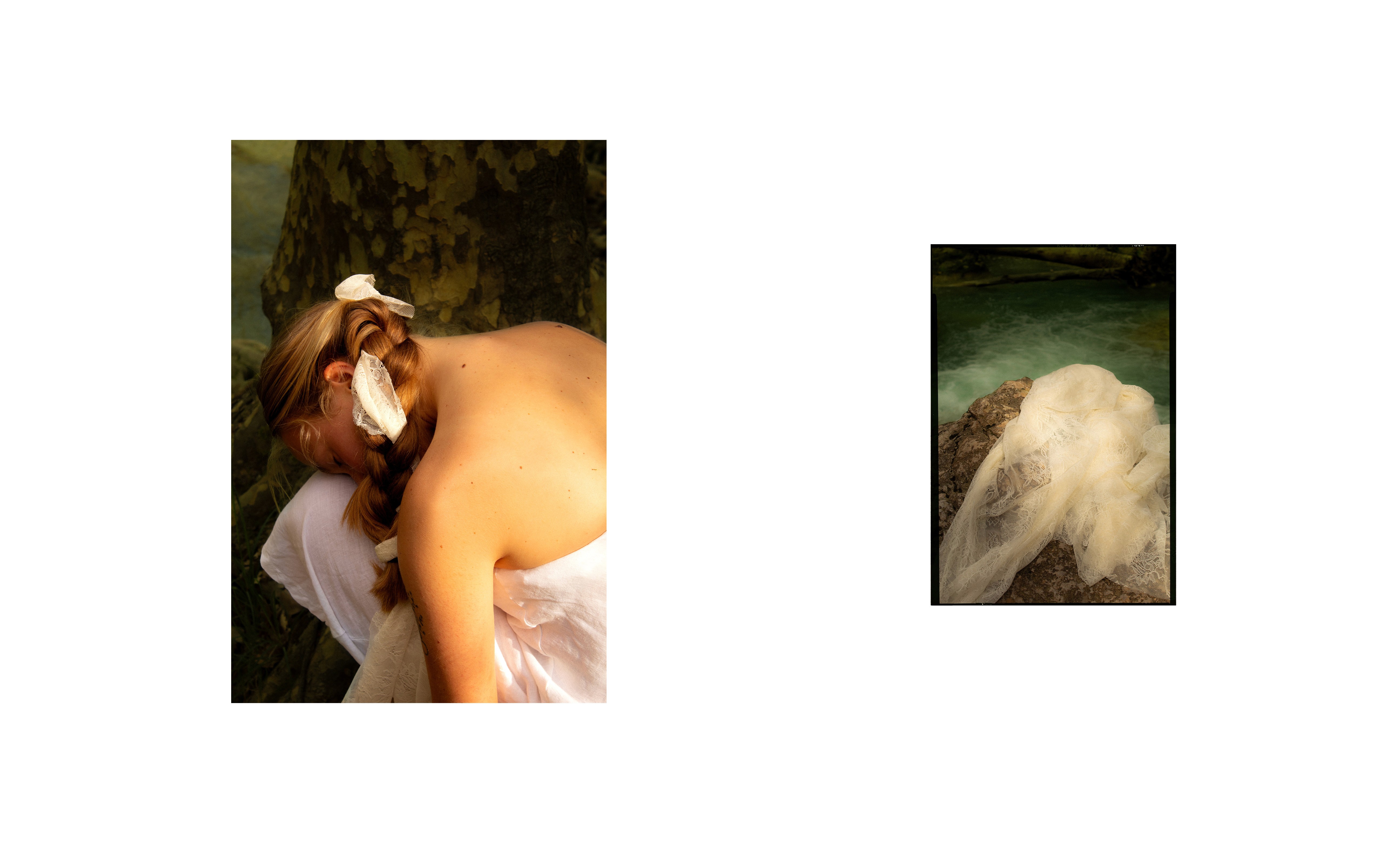 Cette série de photographie éditoriale illustre le mythe de Daphnée, nymphe de la nature, qui fuit Apollon pour échapper à son désir. À l’instant où elle va être saisie, son corps se transforme : la peau devient écorce, les bras s’élèvent en branches, les cheveux se figent en feuillage. Elle n’est plus tout à fait humaine, pas encore tout à fait arbre.