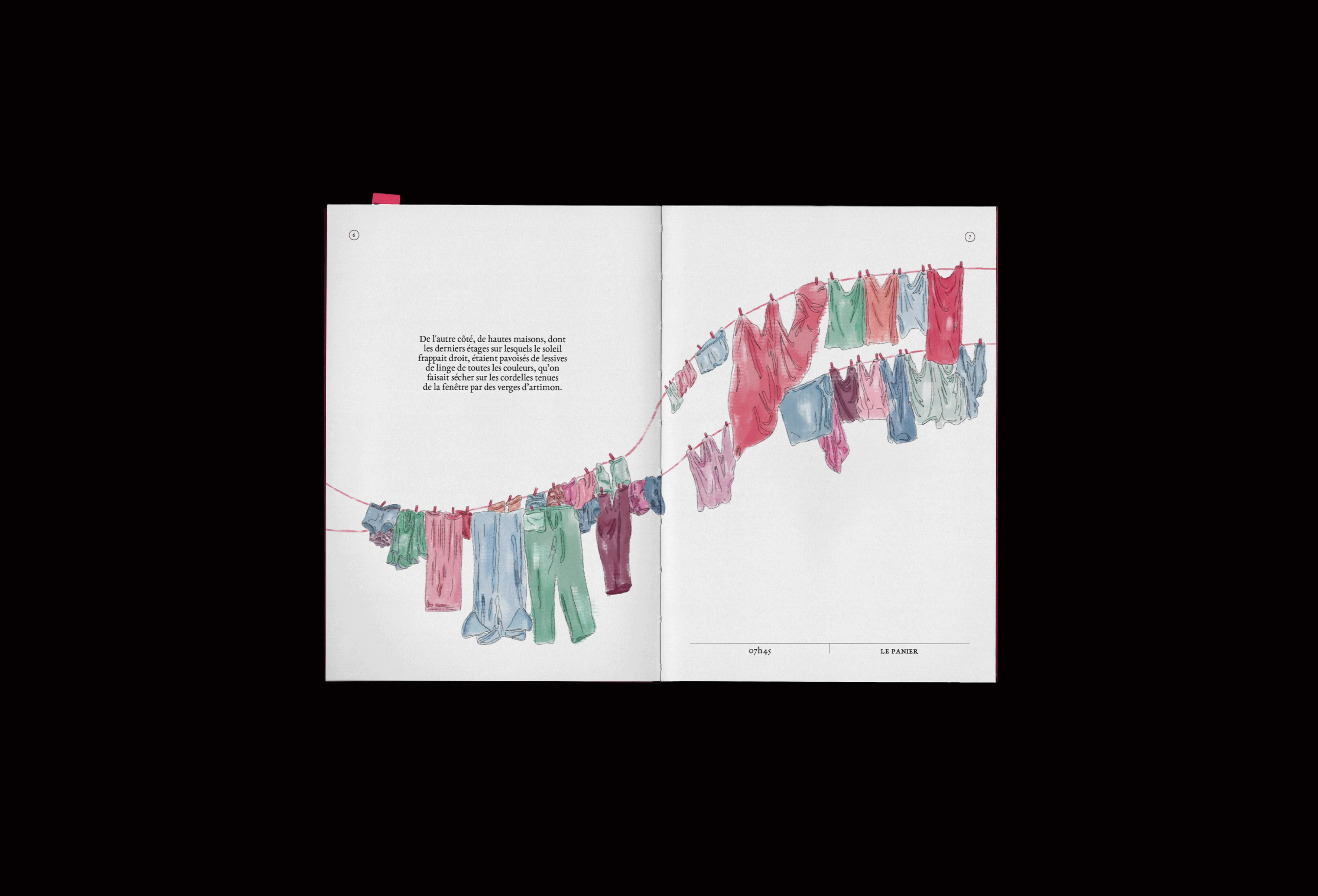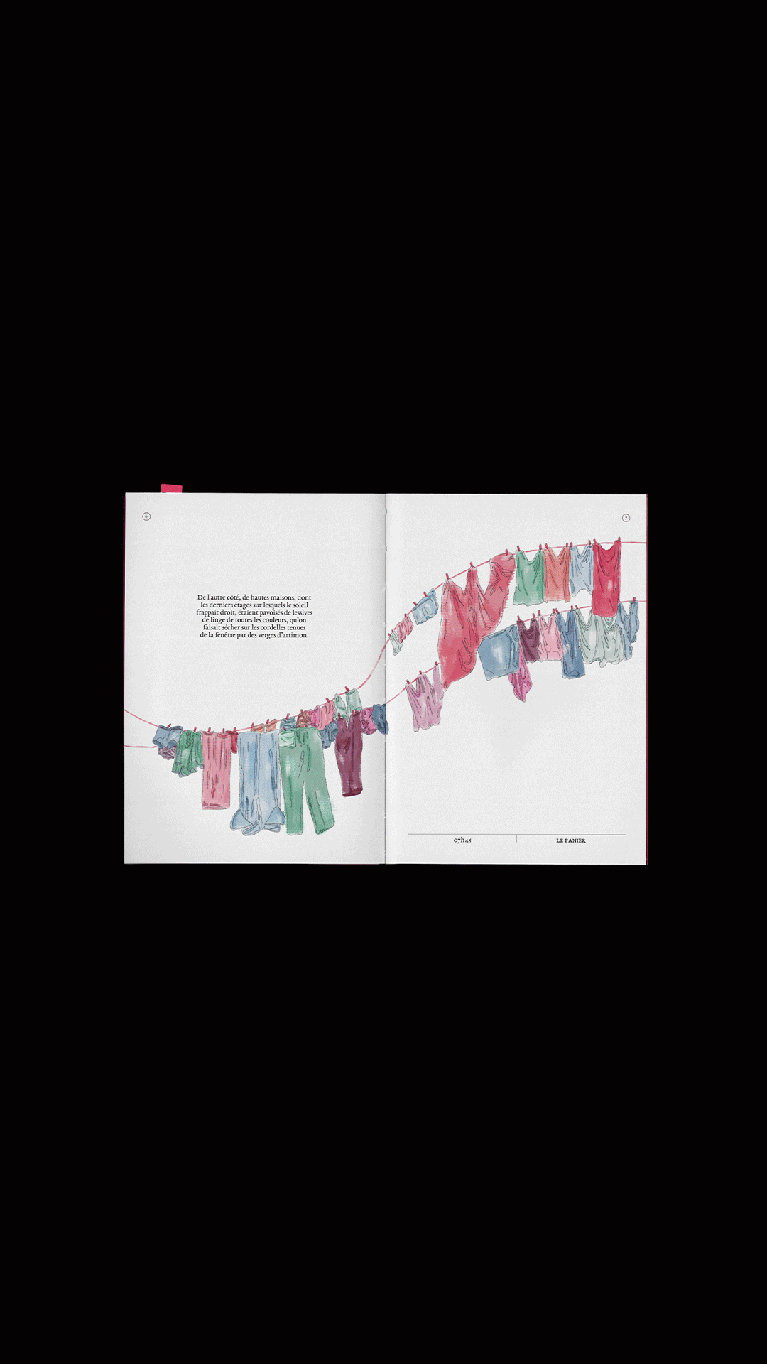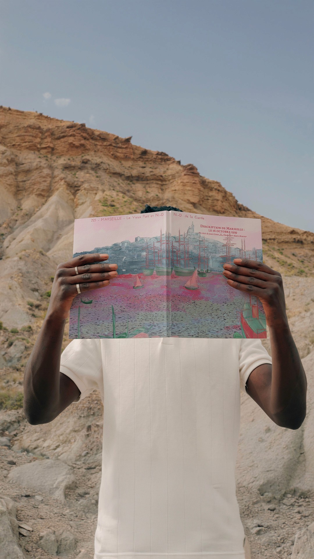 Livre illustré inspiré du texte "Description de Marseille : Le 16 octobre 1939" de Jean Giono. Le récit parcourt la ville comme un regard omniscient qui s’arrête sur des fragments de vie avant de poursuivre sa dérive. Les illustrations accompagnent ce mouvement et révèlent le merveilleux discret niché dans les scènes ordinaires du quotidien, faisant de Marseille le véritable personnage du livre.