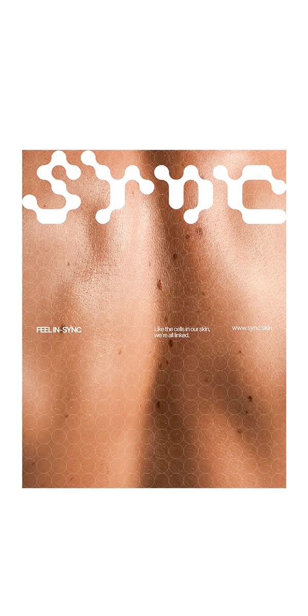 Sync est une marque fictive de skincare non genrée dont la stratégie remet en question le discours anti-âge traditionnel. Plutôt que de chercher à lutter contre le temps, la marque s’appuie sur une vision scientifique de la peau et sur ce qui nous relie tous : les cellules.
